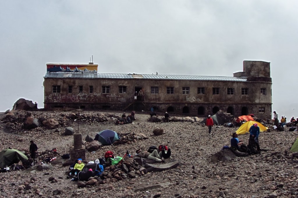 zurück Rainer Bauch, Wehr/Baden Edgar Nönnig, Thonhausen/Thüringen Fotos ![]() ![]() A=Kasbegi Der Kasbek (5047 m) befindet sich an der Grenze zwischen Georgien und Russland ( Nordossetien) auf dem Kaukasushauptkamm. Er ist von beiden Seiten besteigbar, aber aufgrund der Infrastruktur besser von Georgien aus. Bereits im Jahr 2010 hatte ich den Nordkaukasus in Georgien allein besucht und diesen Berg in Augenschein genommen und war dabei zu einer Erkundungswanderung bis nahe an die meteorologische Station auf 3700 m aufgebrochen. Der Berg war für mich optisch noch faszinierender als der 5642 m hohe Elbrus im naheliegenden Russland, den ich im Jahr 2004 mit meinem Bergfreund Heinz Göbel schon bestiegen hatte. Die metereologische Station war für mich zum damaligen Zeitpunkt mit Wanderschuhen über den Gletscher nicht erreichbar. Es ist auch schon lange keine meteorologische Station mehr, sondern wird als Berghütte benützt, was uns aber erst in diesem Jahr richtig klar wurde. Man muss sich aber sehr überlegen, ob man als Naturliebhaber einen kaum zu übersteigernden Kontrast an Minimalhygiene und - ästhetik hinzunehmen bereit ist. Außerdem muss die Anmeldung aufwendig in Tbilisi erfolgen, es sei denn man schließt sich einer organisierten Tour an. Auf jeden Fall hat der bunkerartige Bau nichts mit z.B. einer Alpenhütte gemein. Einen Riesenvorteil hätte/hat die Unterkunft aber schon. Man spart beim Aufstieg zum 5000er Gepäck, weil man kein Zelt schleppen muss. ![]() ehemalige metrologische Station Im August 2013 brachen mein Bergpartner Rainer Bauch und ich gemeinsam auf, um den Berg Kasbek zu besteigen. Die Zeit war knapp bemessen, weil wir nur einen Wetter - Reservetag eingeplant hatten. Die Nutzung der Hütte hatten wir nicht vorgesehen, man mussten dafür aber einen gehörigen Anteil von Zusatzgepäck auf die Schultern satteln. Dazu gehörte Zelt, Unterlagen, Kocher, Benzin. In meinem Fall standen mir abzüglich An-und Abreisetage+ ein Einlauftag mit einem Wetterreservetag nur 5 Tage zur Verfügung. Der Wetterreservetag musste schon vertan werden, als am Aufstiegsmorgen von unserem Quartierort Kasbegi Gewitterstimmung in Bergrichtung zu sehen war und dann auch Regen aufkam: Unser Aufstieg begann ab dem Sattel der Dreifaltigkeitskirche Zminda Sameba ( Weltkulturerbe) in ca. 2100 m. Auch der erste Aufstiegstag musste abkürzt werden, denn am Nachmittag begann es kurz vor einer Wildbach/fluß-Überquerung in 2900 m Höhe wieder zu regnen, so dass wir spontan und vorzeitig das Zelt aufbauen mussten, obwohl noch Zeit war weiter zu steigen. Die Aufstiegs - Etappe 2 war bis zu einer Höhe von ca 3900 m geplant, fiel dadurch kürzer aus. Wir zelteten an der Berghütte Bethlemi (vormaliger meteorologische Station 3680 m ). Das Gewicht, das wir bis hier her zu tragen hatten, hatte mir schon Energie geraubt, so dass ich nicht gleich in der darauffolgenden Nacht den Gipfelaufstieg über einen Höhendifferenz von ca. 1400 Höhenmeter anschließen konnte sondern noch einen Höhen - Akklimatisationstag und Erhohlungstag brauchte, den wir nicht mehr hatten. Mein Bergpartner Rainer hatte aber die Energie und startete in der Nacht um 3 Uhr zum Gipfelaufstieg allein. So ganz allein war er allerdings nicht, denn zur gleichen Zeit waren mehrere Gruppen und Einzelpersonen unterwegs. Das Wetter war optimal, relativ warm. und den ganzen Tag fast windstill. Eine hervorragende Leistung von ihm, zumal er auch zu den wenigen "Älteren" gehört die sich das mit 60 noch antun. Er erreichte auch den Gipfel. Unterwegs kombinierte er sich noch mit anderen Bergsteigern. Ich selbst nutzte den Tag lediglich nur noch zu einem Aufstieg zu den sogenannten Kreuzen in etwa 3860 m Höhe. Zeitlich hatte ich ja nicht mehr den den Reservetag am folgenden Tag ebenso den Gipfel noch zu erreichen. Weiterhin war ich konstitutionell nach dem schweren Gepäckaufstieg nicht in der Lage die 1400 m bis zum Gipfel in einem Ritt durchzuziehen. Wir mussten ja aus zeitlichen Gründen am Sonnabend voll absteigen um am Sonntag mit dem Marschrouttaxi nach Tiflis zurückzufahren und am Montag morgen nach Deutschland zurückzufliegen. Am nächsten Morgen hörten wir Regen auf unserem Zelt und beim Rausschauen sah es sogar nach Dauerregen aus. Erfreulicherweise ändert sich das Wetter gelegentlich im Gebirge auch manchmal schnell und wir konnten doch im Trockenen und am Ende sogar bei Schönwetter bis zur Ausgangsstelle oberhalb von Gargeti absteigen. Zusammenfassung: Sa. 10.08. Flug Berlin - Tiflis So. 11.08. Fahrt Tiflis - Kasbegi mit dem Marschrouttaxi, Unterkunft guest house bei Familie.(15 Euro/Nacht+Frühstück) Mo. 12.08. Eingeh- und Akklimationstour Kasbegi-Gargeti-Zminda Sameba auf 2170 m Di. 13.08. Geplanter erster Aufstiegstag musste wegen Gewitter am Morgen verschoben werden. Dafür Jeepfahrt nach Juta im SNO-Valley und 3-4 h Talaufstieg in Richtung Chaukhi Pass ca 3000 m Mi. 14.08. Erster Aufstiegstag oberhalb Gargeti (2100 m) bis vor Flußüberquerung (2900 m) Do. 15.08. Zweiter Aufstiegstag bis Bethlemi-hut (ehem. metereologische Station , 3680 m) Fr. 16.08. Dritter Bergtag, Rainer auf Gipfel. ich selbst kleine Exkursion bis auf 3860 m Sa. 17.08. Abstieg bis auf 2100 m (mit Jeep bis zur Unterkunft auf 1800 m ) So. 18.08. Fahrt nach Tiflis Mo.19.08. Rückflug Deutschland Fazit: Als 2 Mann - Tour, wie immer alles selbst organisiert, zumindest zu 50% erfolgreich, betrachtet man die Erreichung des Gipfels. Auch für mich war es gegenüber 2010 eine Leistungsverbesserung. Ich muss aber noch ein weiteres mal zum Kasbeg zurückkehren, um vor allem bei mehr Zeit meine Chancen zu nutzen. Die Bergerlebnistour (auch Foto-Ausbeute) war sehr zufriedenstellend. In einem solch urigen Land und gewaltigen Gebirgsmassiv wie den Kaukasus produziert eine solche Aktion intensivste und unvergessliche Erlebnisse. Bemerkung: Im Vergleich zu 2010 (damals Juli, diesmal August) waren unvergleichlich mehr Bergaspiranten mit unterschiedlichen Randbedin