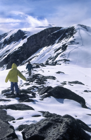 zur Bergseite höchster Berg Norwegens und Skandinaviens Edgar, Hella und Elisabeth Nönnig gestartet von der Hütte Spiterstulen (1100 m) |